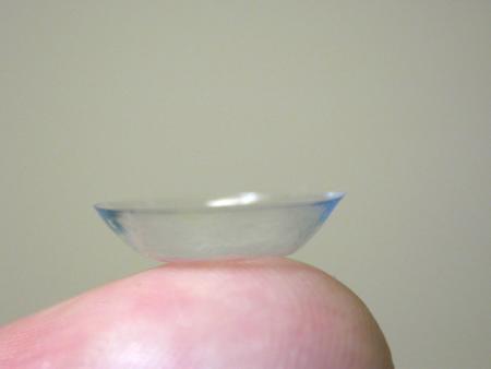 2.Položíme si šošovku na koniec ukazováka a pozrieme sa na ňu zboku, aby sme videli jej hrany. Pokiaľ má šošovka tvar misky, a teda jej hrany sú vodorovné, v tom prípade je správne a nie je pretočená. Pokiaľ však má v pohľade do svetla na hranách vidideľné skosenie, máte je ju zrejme naopak a na oku Vám bude vadiť a oko vyvolá obrannú reakciu slzenia. (Pokiaľ si ju vložíte naopak, nerobte paniku a vkľude si ju rýcho vyberte. )