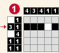1.Môžete vidieť že daná maľovaná krížovka pozostáva z riadkov z piatich štvorčekov a stĺpcov taktiež z piatich štvorčekov. Keďže už viete, že medzi číslami musí byť aspoň jedno voľné miesto, pozrite sa na druhý riadok. V tomto riadku sú v legende čísla 3 a 1 a keďže je štvorčekov 5, vyfarbia sa tri políčka, jedno necháte voľné a ďalšie jedno. Voľné miesto označte krížikom alebo bodkou čo by malo značiť, že miesto ostáva nevyfarbené. 3 + 1 + 1 = 5 Môžete vidieť, že ste využili všetkých 5 štvorčekov a vyfarbili presný počet štvorčekov, ktorý mal byť vyfarbený.