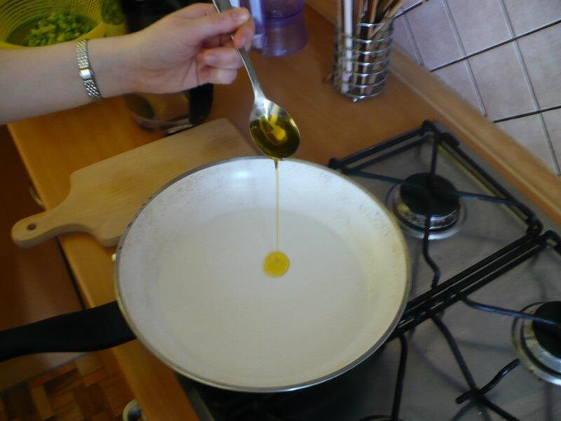 3.Na panvici rozpálime trošku oleja.