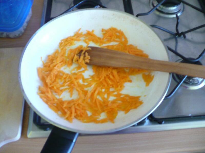 4.Na oleji opražíme nastrúhanú mrkvu. Nádherne začne voňať a uvoľní sa jej skvelá chuť :-)